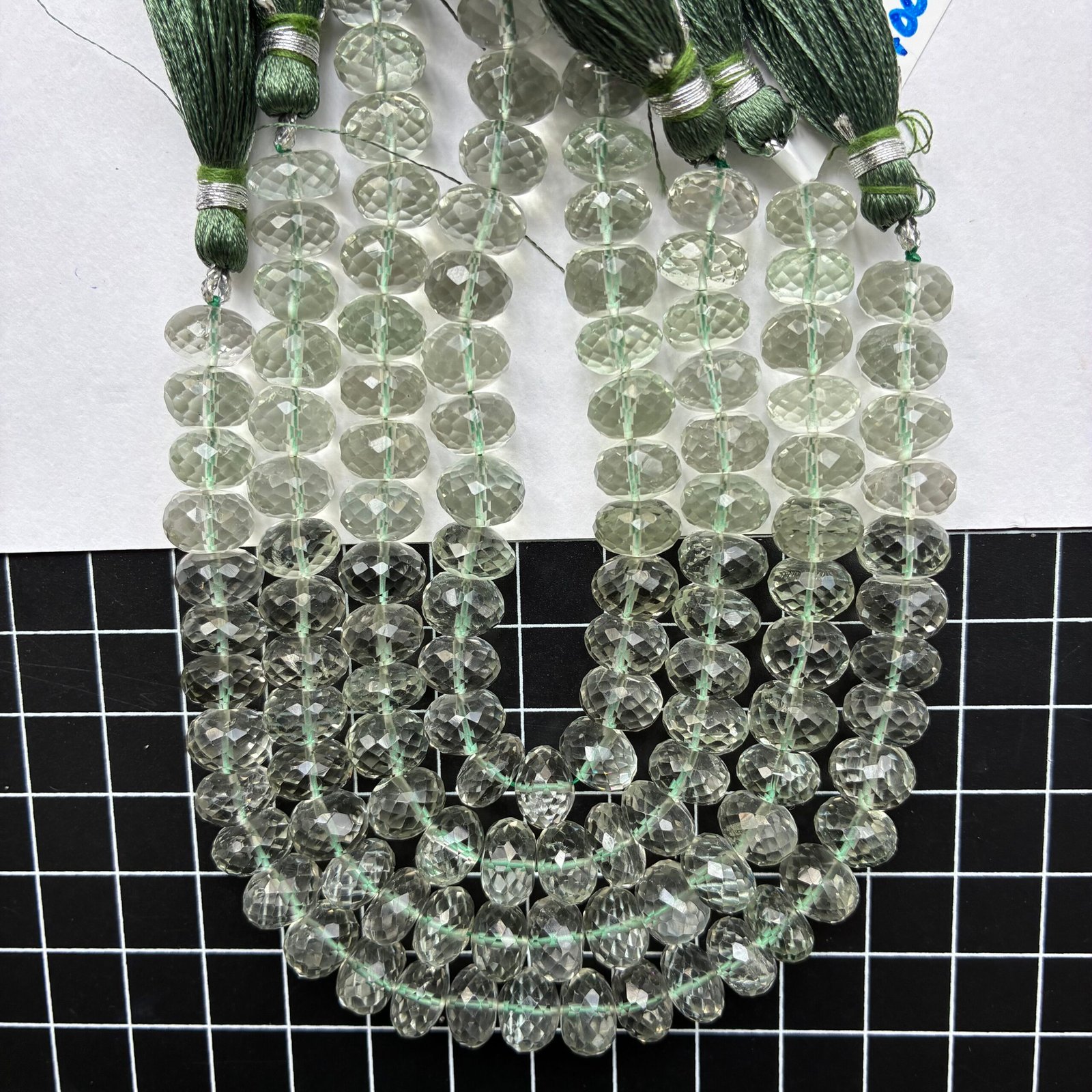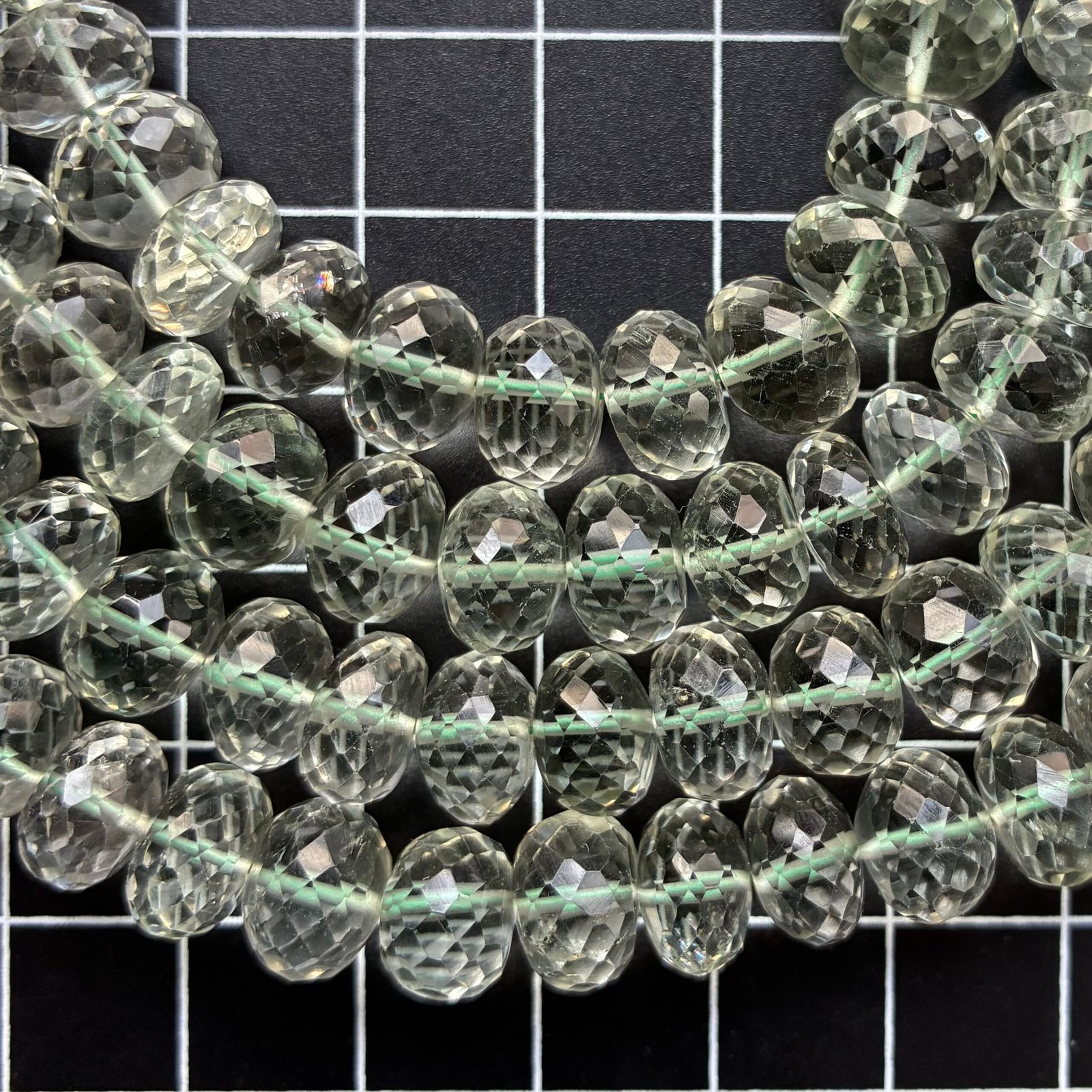 Green Amethyst, Faceted Drop, 24 cm, 77 beads, 9.3*7.4mm
