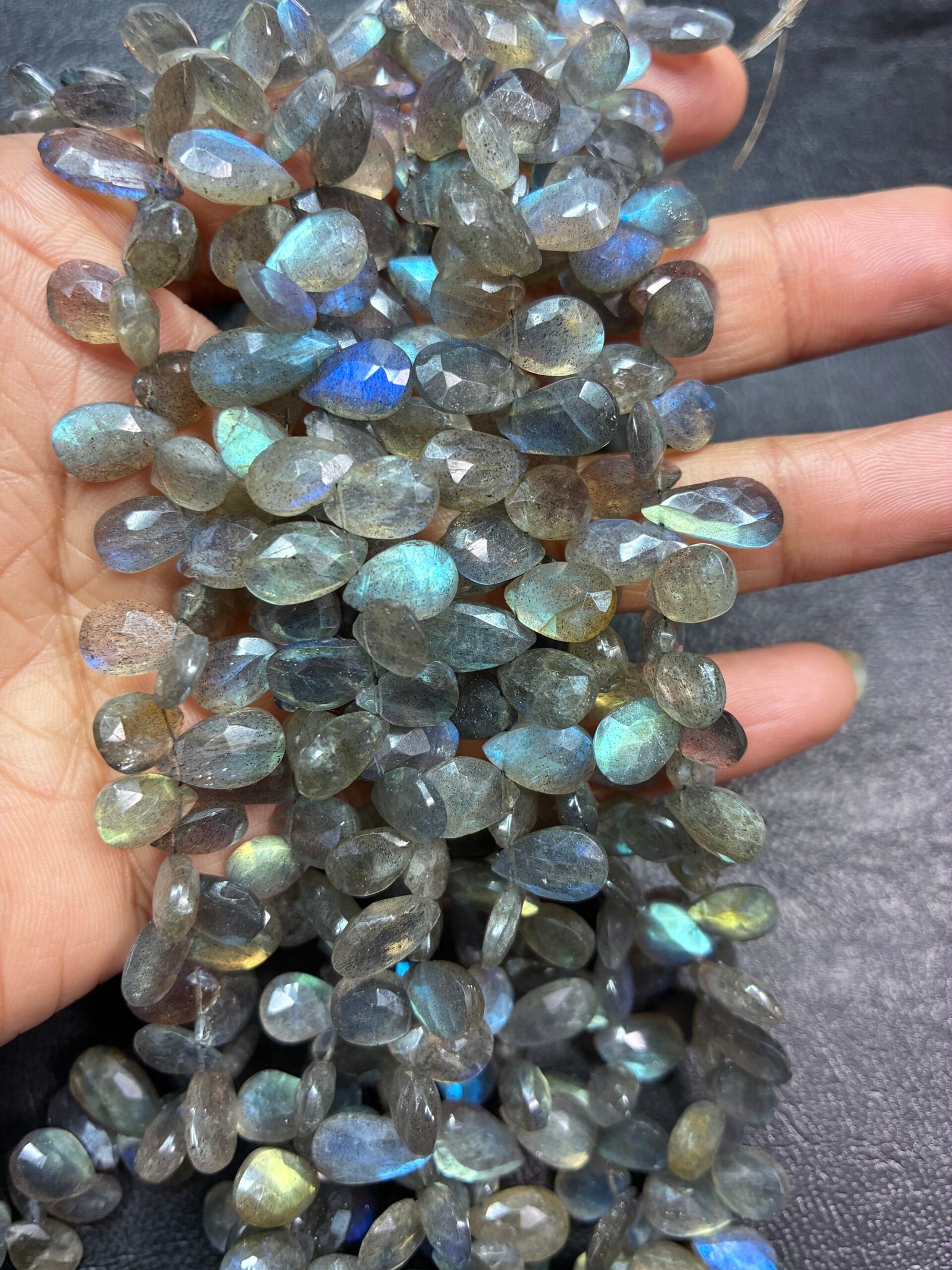 Featuring a meticulously crafted pear shape with precise faceting, the Labradorite gemstone enhances light reflection for unparalleled brilliance. Whether you’re creating timeless earrings or an eye-catching pendant, its unique cut guarantees a refined finish.