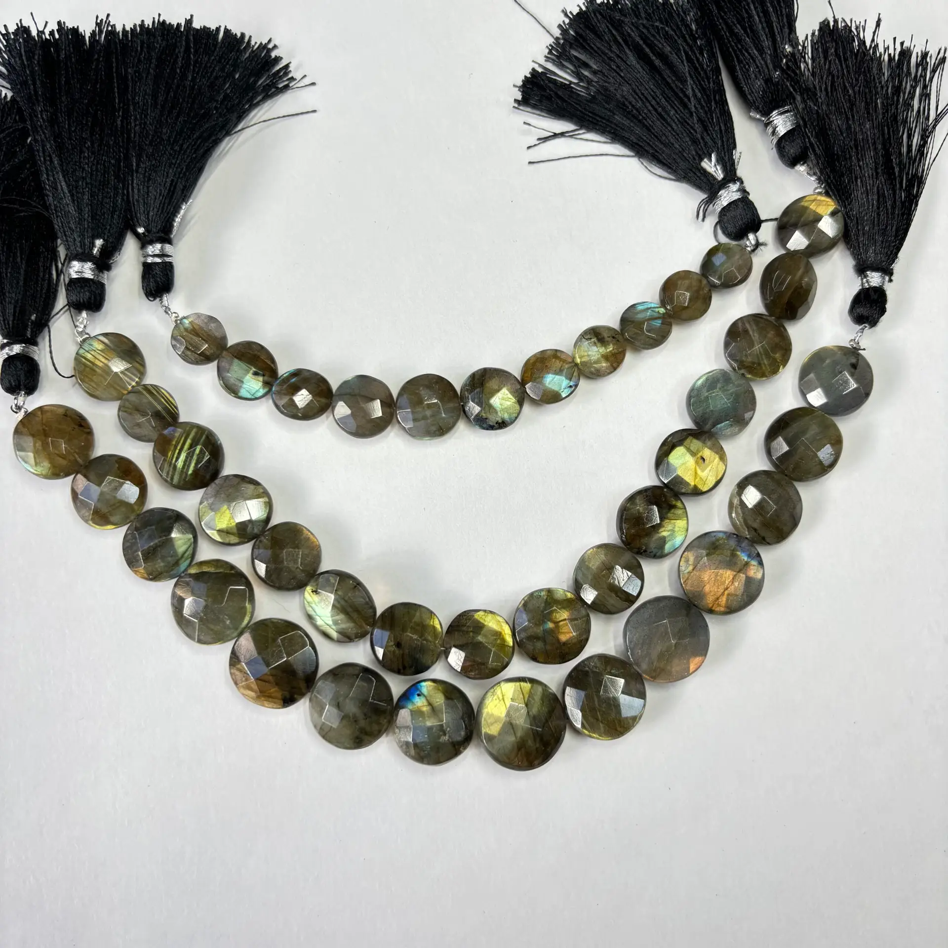 Labradorite faceted round beads, 15.3*15.7*6- 12*12*5.7