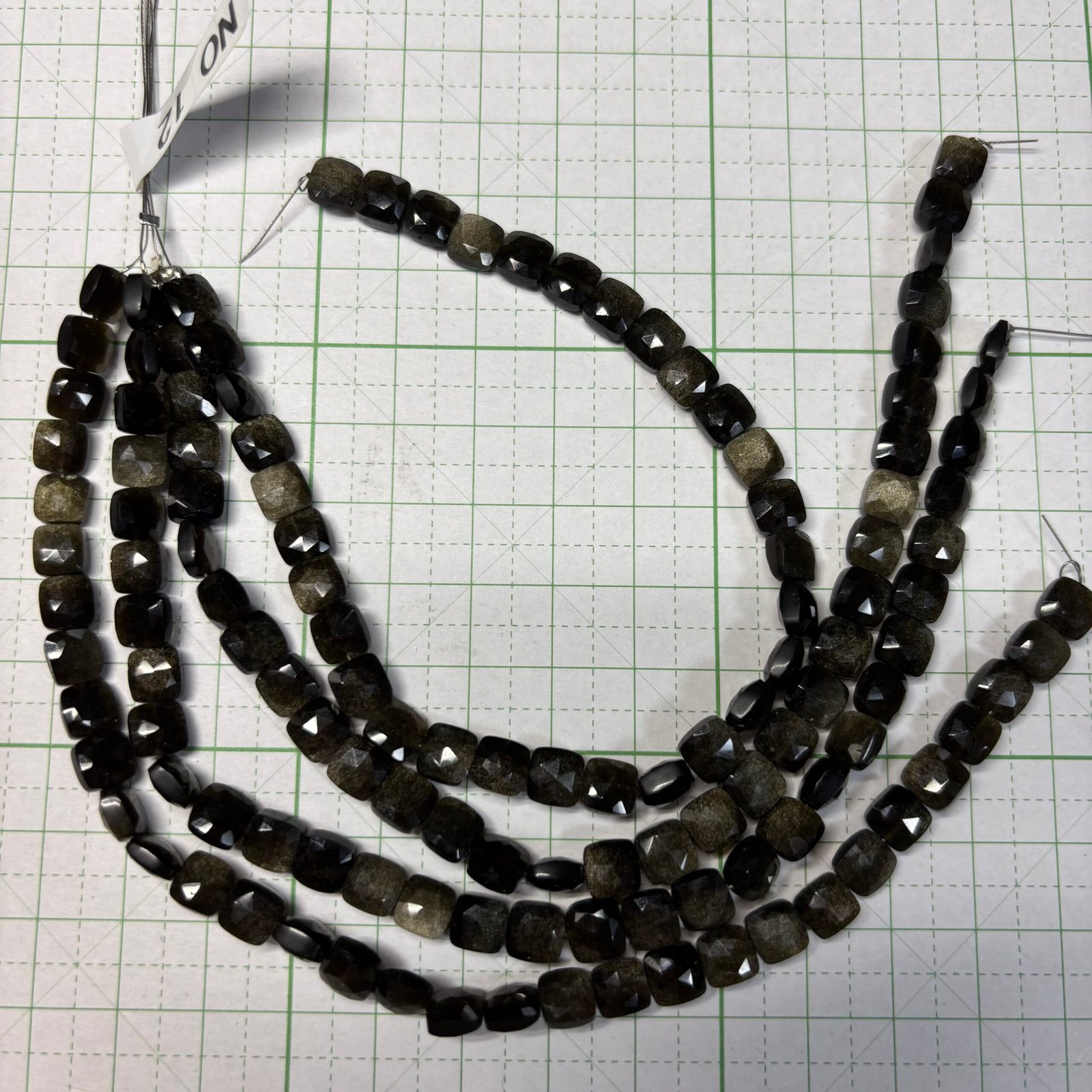Obsidian Faceted cushion, 21 cm, 6.5*6.5mm