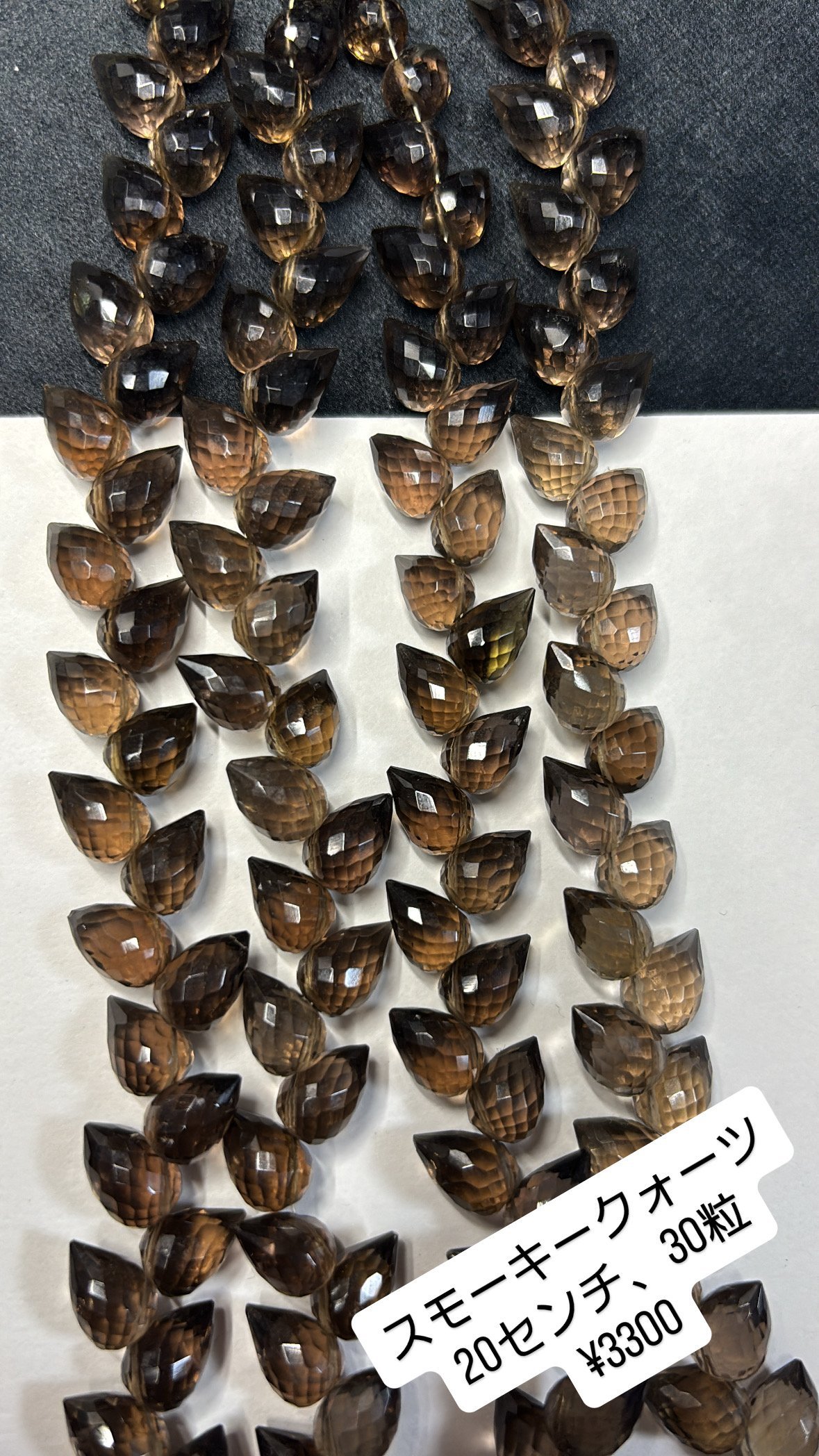 smokey drop briolette cut, 30-32 beads, 18 cm, 10.6*7.15mm