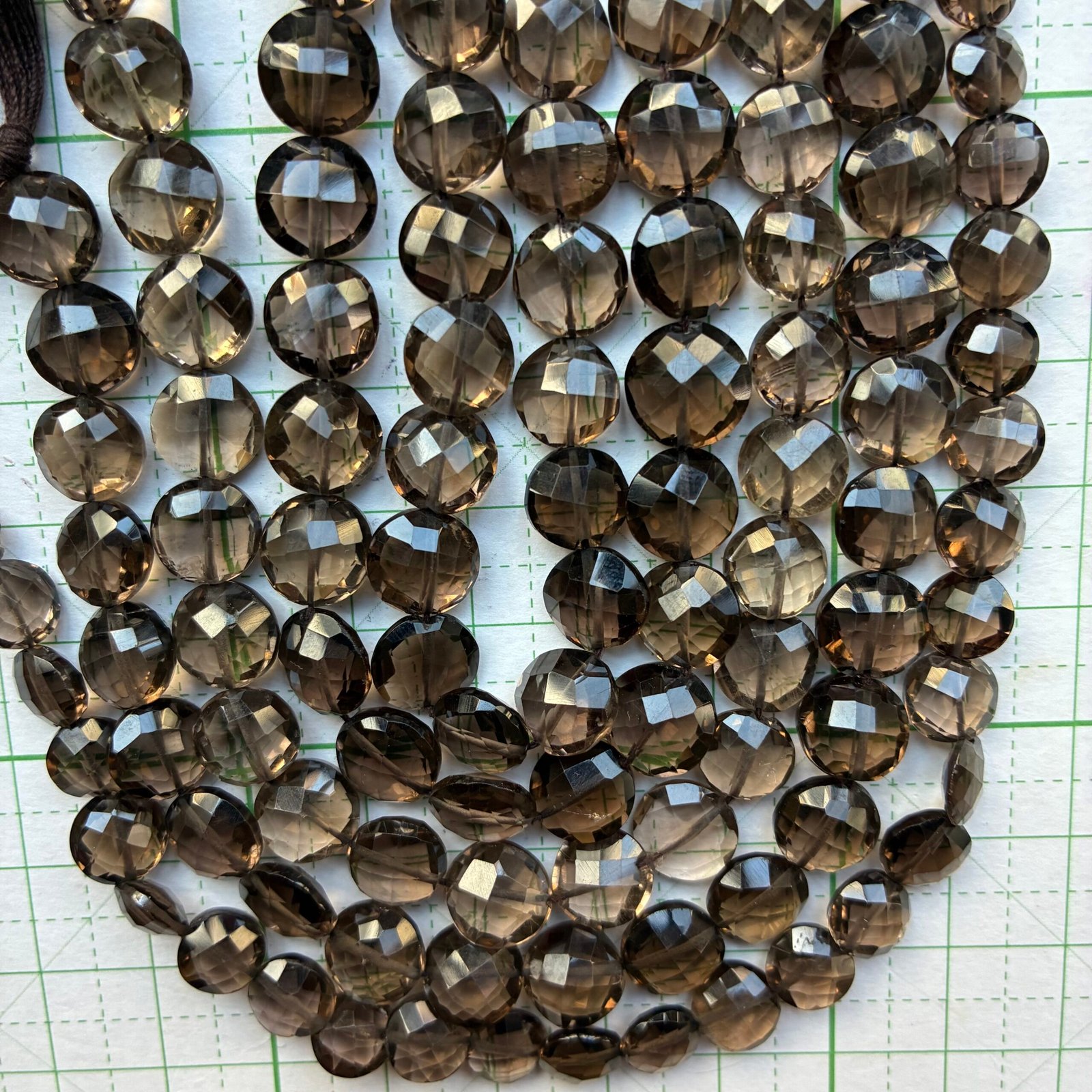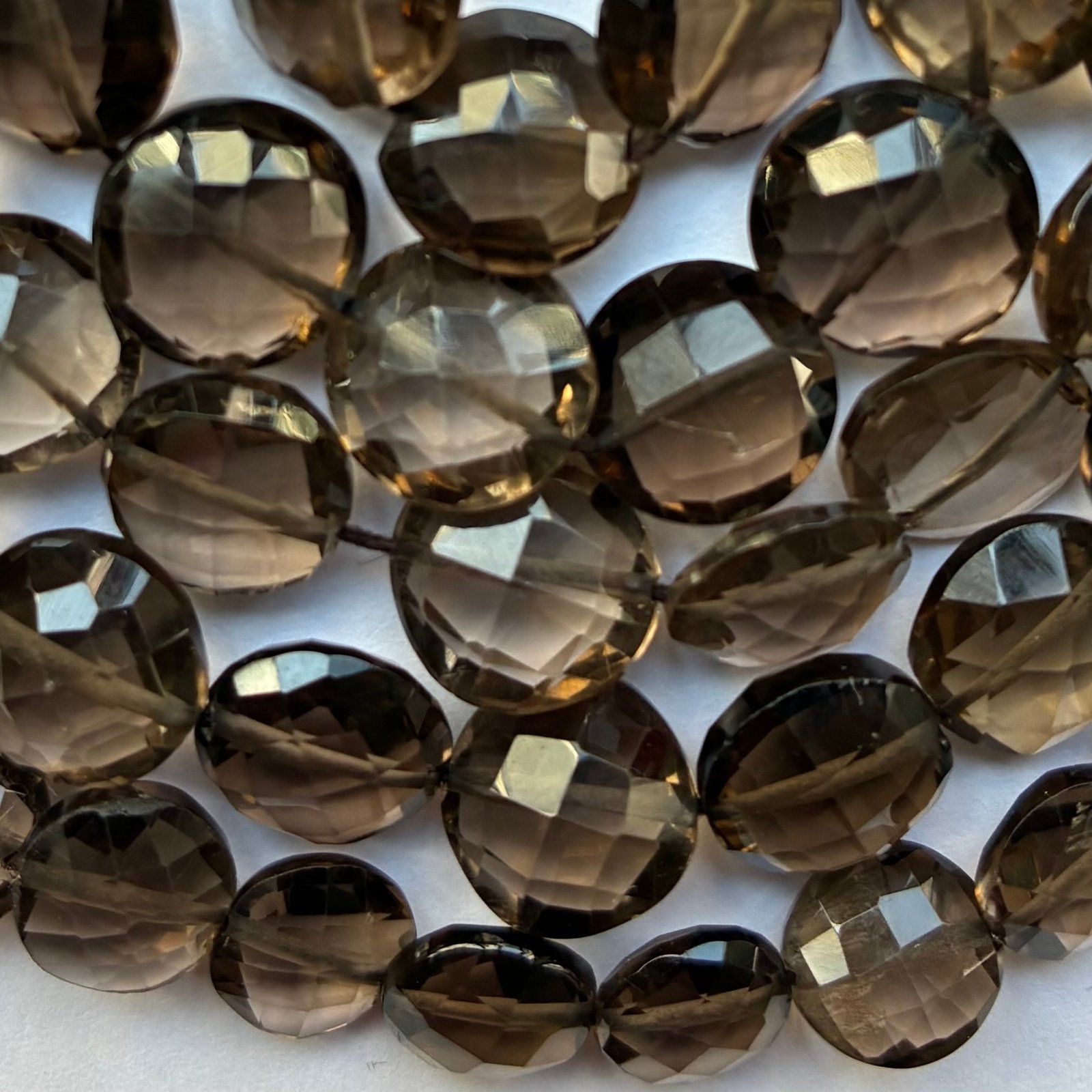 Smoky quartz, carved coin,  Brazil, 20cm &10 cm
